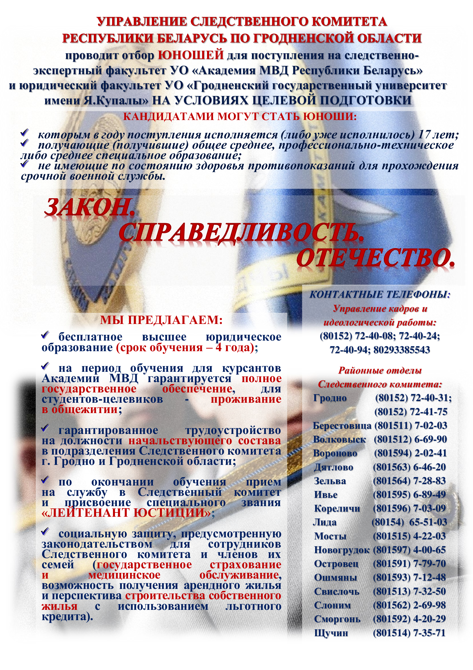 21 октября для учащихся 8-11 классов состоялась профориентационная встреча с представителями Лидского отдела пограничной службы. Обсуждались вопросы вступительной компании, обучения и дальнейшего трудоустройства.