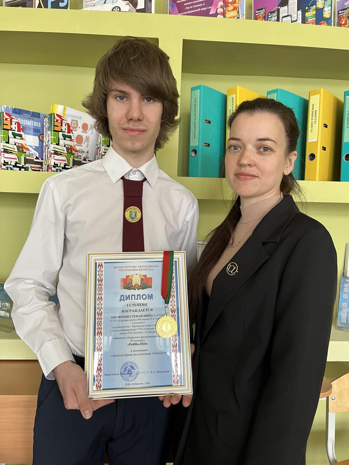 Учащийся нашей школы, Степан Онуфреня, одержал блестящую победу в Открытом республиканском IT-конкурсе «РобИн-2026». По итогам сложнейших состязаний, в которых участвовали лучшие юные инженеры и программисты со всей страны, Степан завоевал Диплом 1 степени. За стремительным взлетом молодого дарования стоит опытный наставник - Анна Сергеевна Малявская. Педагог с большой буквы, в очередной раз доказала свой профессионализм: на её счету уже множество подготовленных учащихся, которые становились победителями конкурсов различного уровня.