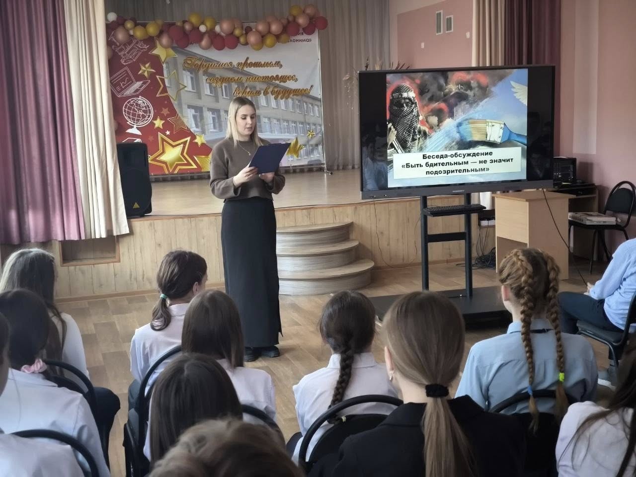 14 апреля отдел по работе с детьми и молодежью Слонимского районного центра культуры, провел беседу-обсуждение "Быть бдительным, не значит подозрительным", рамках профилактики терроризма и экстремизма среди учащихся 6 и 7 классов ГУО "Средняя школа №4 им. П.И. Батова г. Слонима".