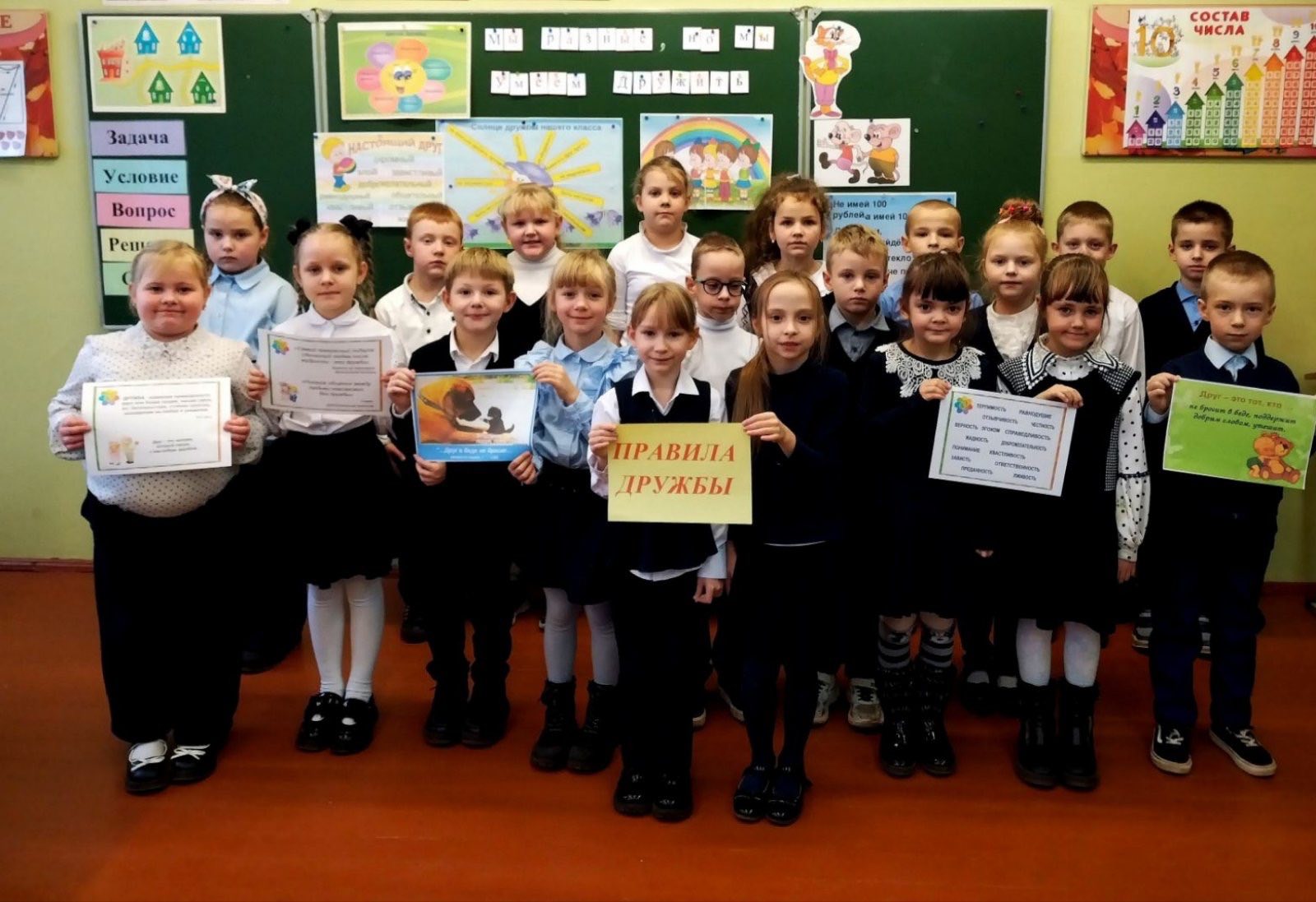 4 декабря в 1 классе прошёл урок нравственности «Мы разные, но мы умеем общаться и дружить». Ребята рассуждали над понятием «дружба», определили качества настоящего друга, говорили о законах дружбы. Первоклассники разгадывали загадки, решали проблемные ситуации, составили правила дружбы.