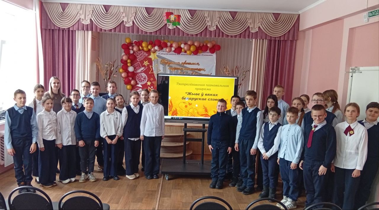 24 лютага для вучняў 6-9 класаў ДУА "Сярэдняя школа №4 ім.П.І.Батава г.Слоніма" загадчык аддзелам па рабоце с дзецьмі і моладдзю Слонімскага раённага центра культуры Макута Вікторыя Валер'еўна правяла тэатралізаваную пазнавальную праграму "Жыве у вяках беларускае слова".