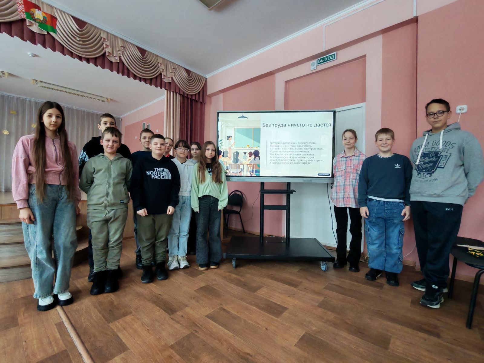22 ноября учащиеся 2-4 классов приняли участие в просмотре и обсуждении мультфильмов «Маленькое дело лучше большого безделья». Ребята обсудили, какое значение имеет труд в жизни людей, поиграли и вместе составили «дерево маленьких дел»