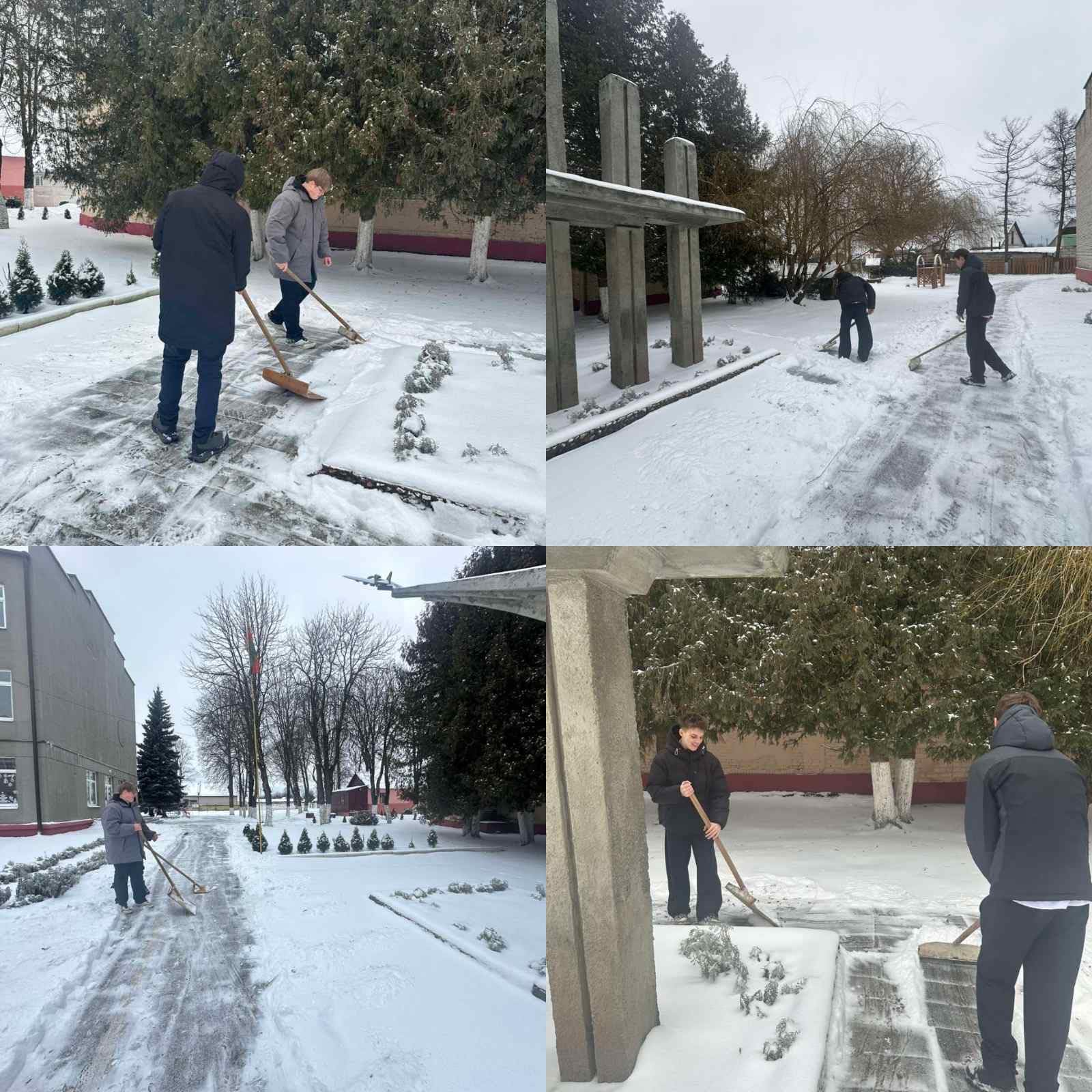 Члены ОО "БРСМ", члены волонтёрского отряда "Батовцы" СШ №4 г.Слонима присоединились к республиканской акции "Уберем снег вместе"