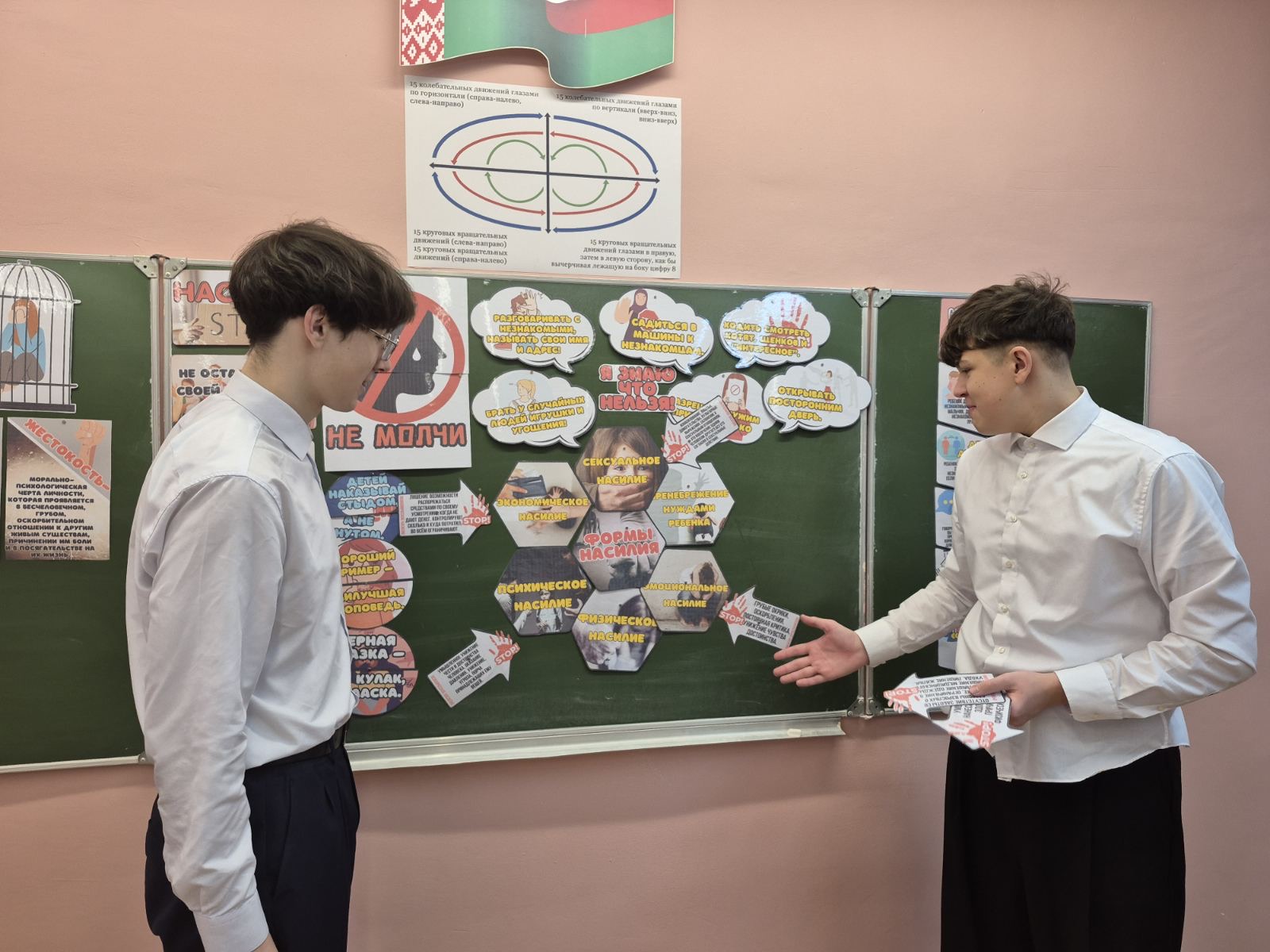 4 февраля в 11 классе прошел классный час "Мир без насилия", на котором учащиеся актуализировали знания о видах насилия, получили советы, которые могут помочь подростку, подвергающемуся насилию. Познакомились с документами, регламентирующими защиту несовершеннолетних от насилия.